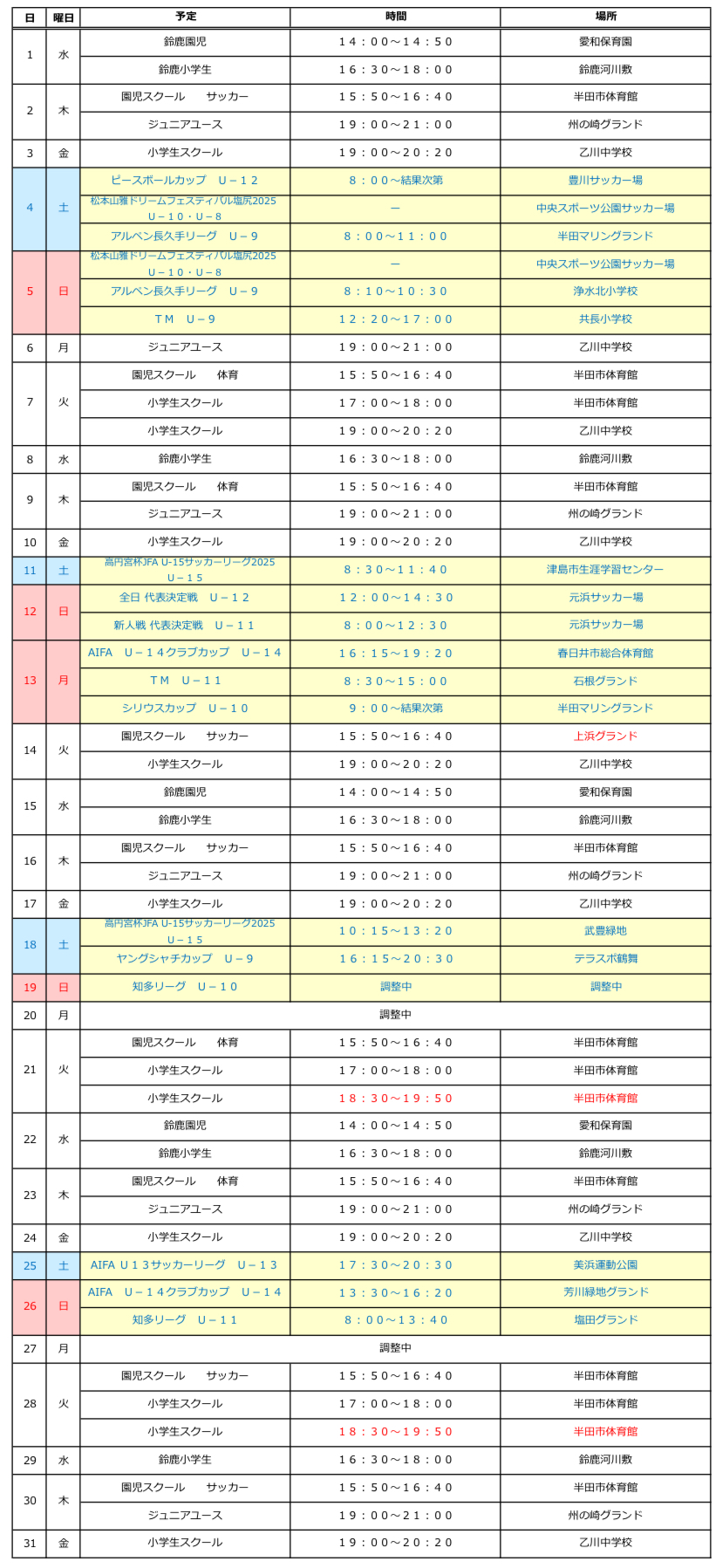 9月28日(日) U-10 知多リーグ 試合結果