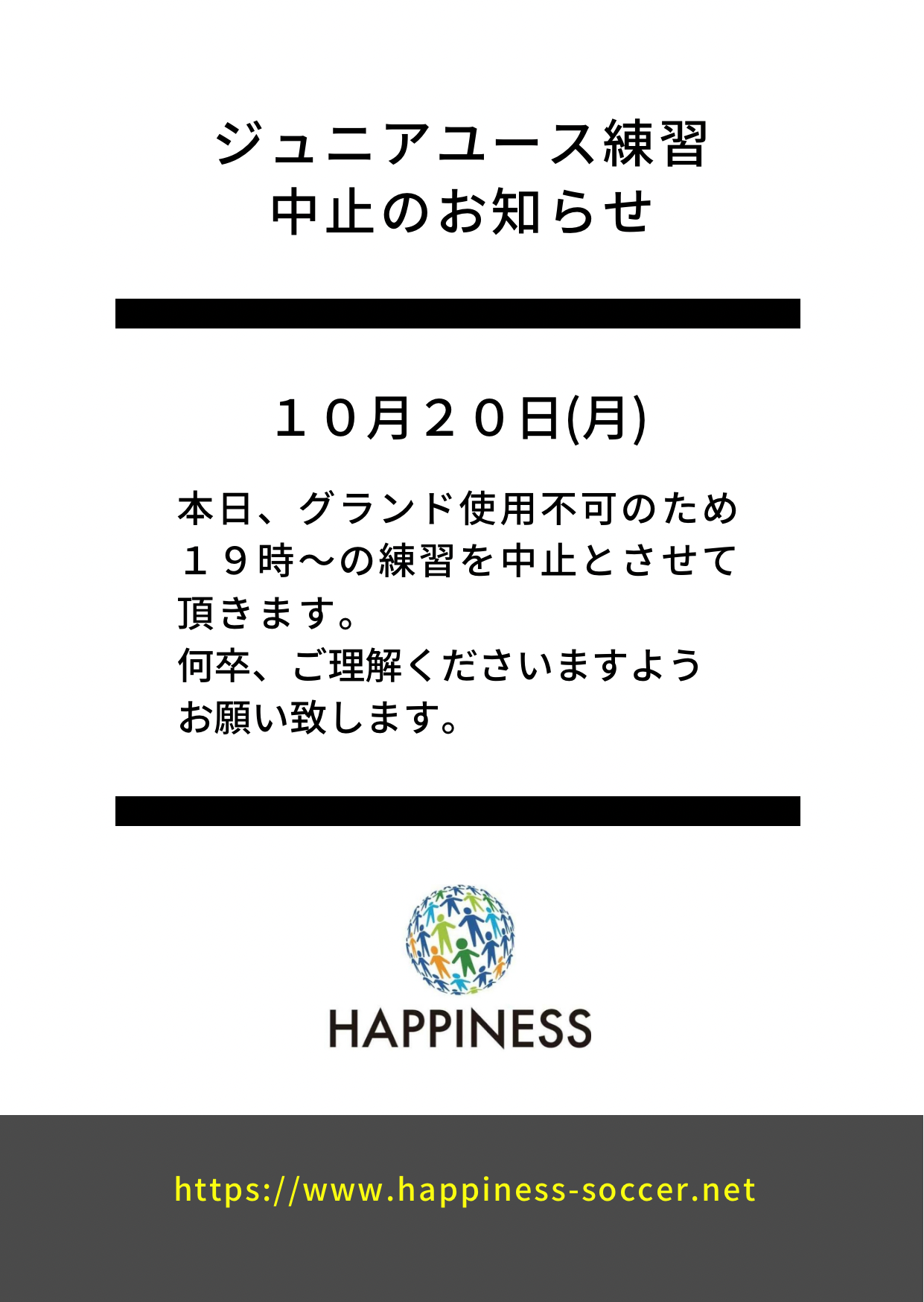 10月20日(月) ジュニアユース練習中止のお知らせ