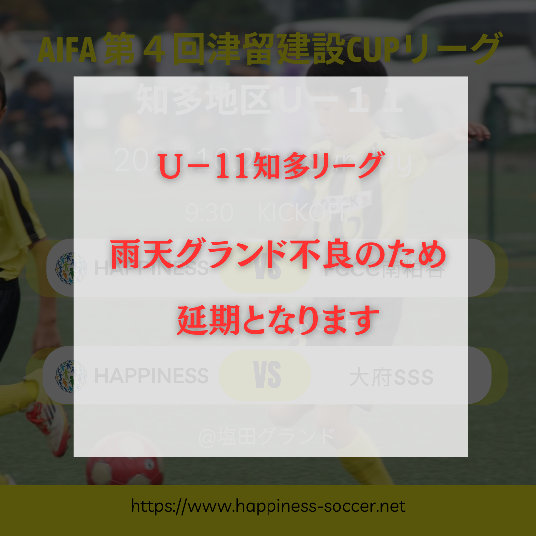 10月26日(日) U-11 知多リーグ 雨天中止のお知らせ