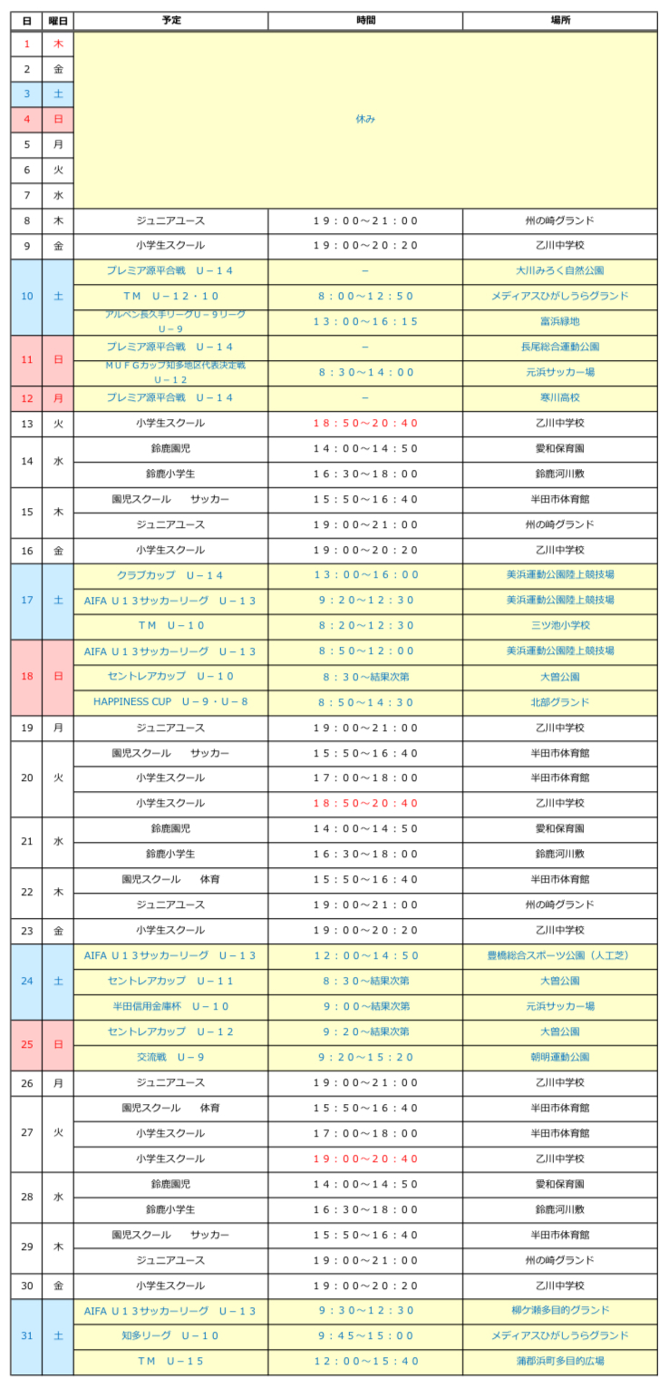 2026年1月予定表
